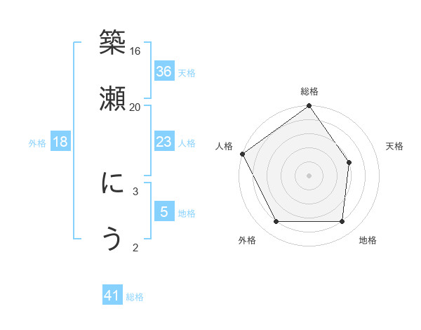 築瀬 にうさんを姓名の画数から五運を鑑定