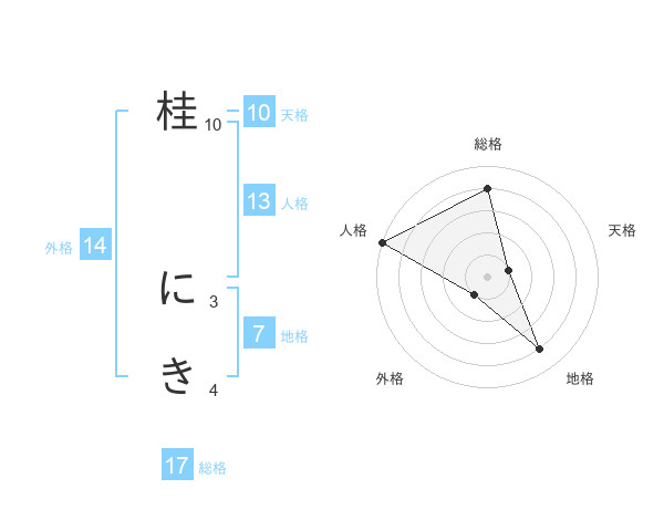 桂 にきさんの総格は17画の4点!