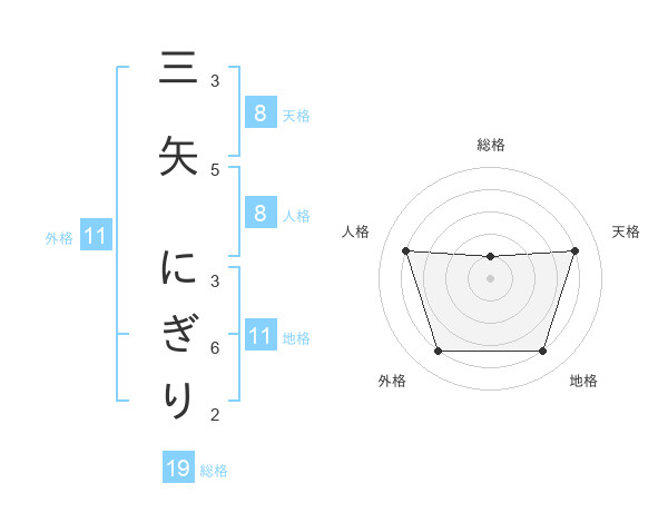 三矢 にぎりさんの総格は19画の1点!
