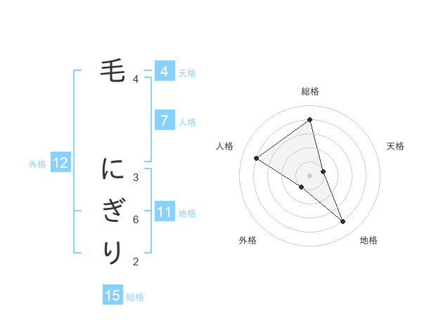 毛 にぎりさんの総格は15画の4点!