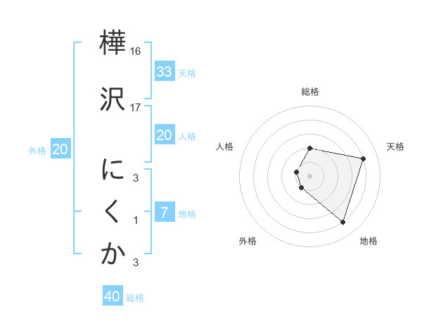 樺沢 にくかさんを姓名の画数から五運を鑑定