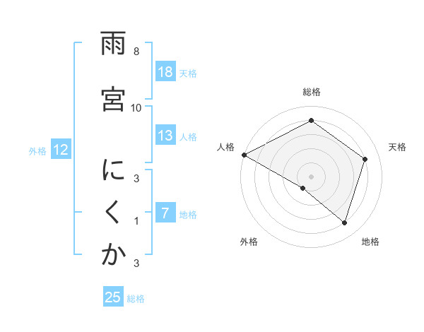 雨宮 にくかさんを姓名の画数から五運を鑑定