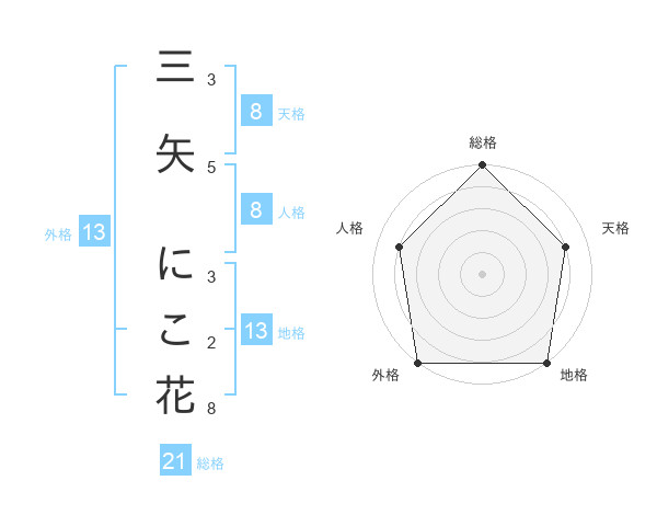 三矢 にこ花さんの総格は21画の5点!