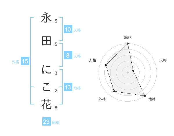 永田 にこ花さんの総格は23画の5点!