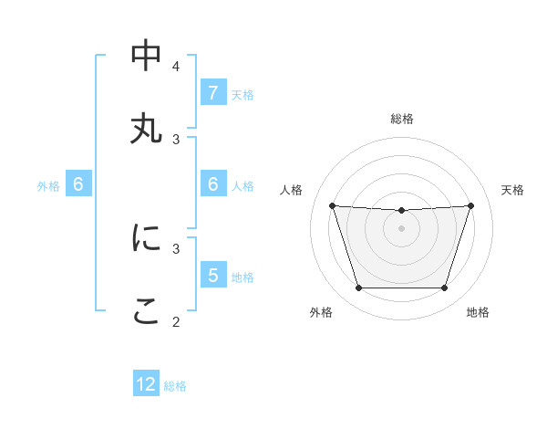 中丸 にこさんの総格は12画の1点!
