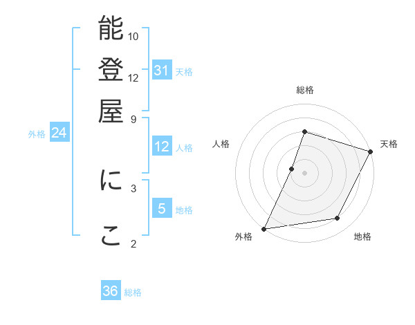 能登屋 にこさんを姓名の画数から五運を鑑定