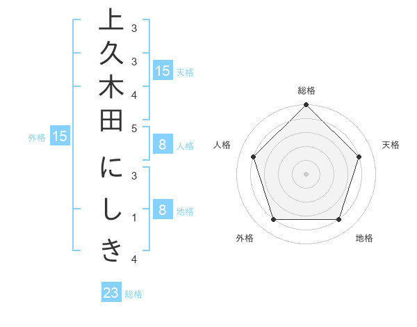 上久木田 にしきさんを姓名の画数から五運を鑑定
