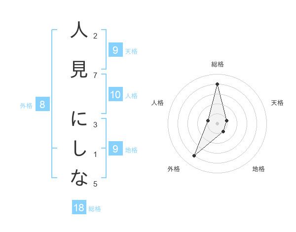 人見 にしなさんの総格は18画の4点!