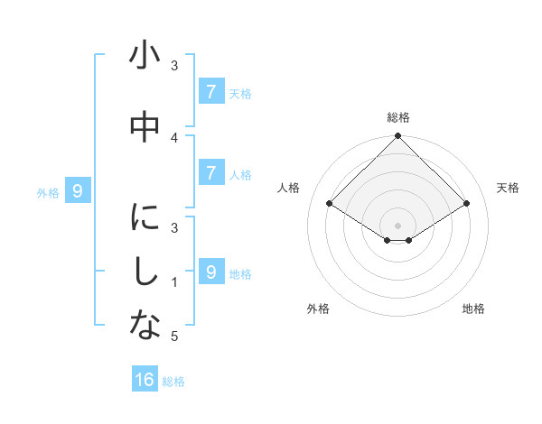 小中 にしなさんの天格は7画の4点!
