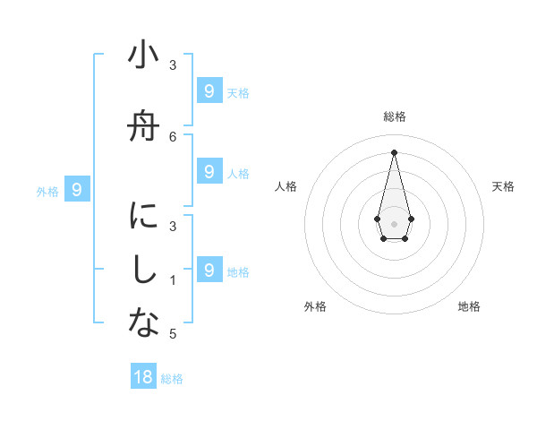 小舟 にしなさんの総格は18画の4点!
