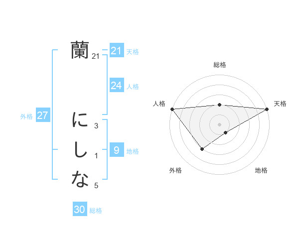 蘭 にしなさんを姓名の画数から五運を鑑定