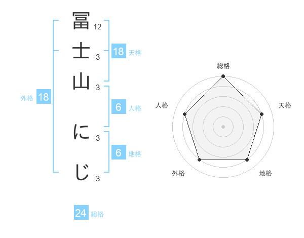 冨士山 にじさんの総格は24画の5点!