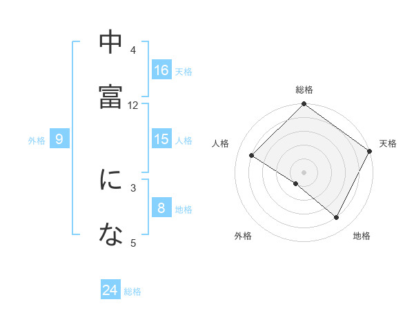 中富 になさんの天格は16画の5点!