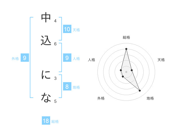 中込 になさんの総格は18画の4点!
