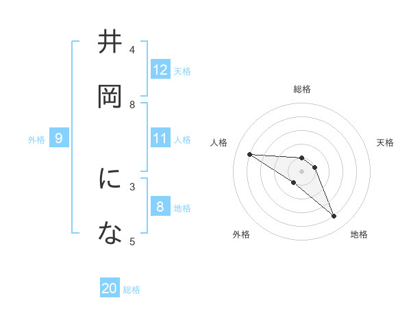 井岡 になさんの天格は12画の1点!