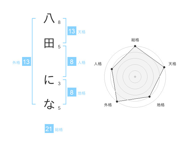 八田 になさんの天格は13画の5点!