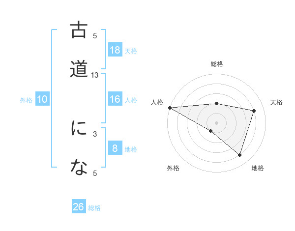 古道 になさんの総格は26画の2点!