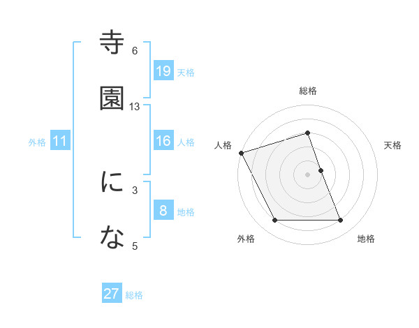 寺園 になさんの総格は27画の3点!