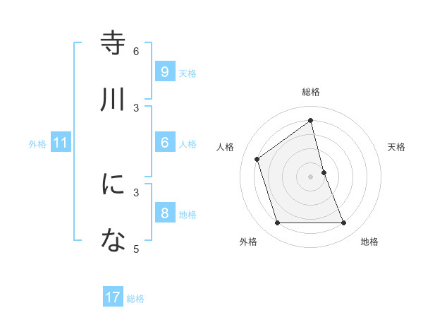 寺川 になさんの総格は17画の4点!