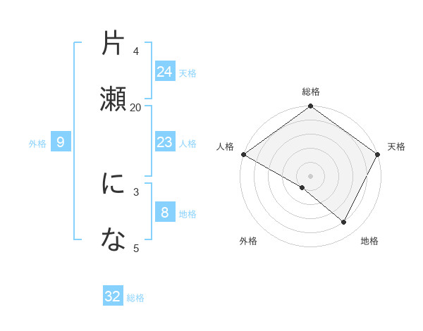 片瀬 になさんの天格は24画の5点!