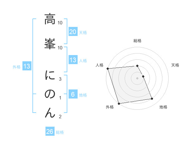 高峯 にのんさんを姓名の画数から五運を鑑定