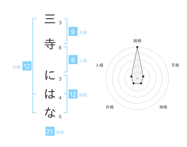 三寺 にはなさんを姓名の画数から五運を鑑定