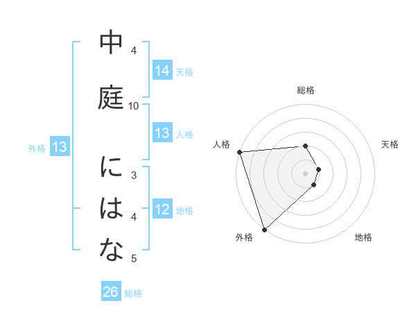 中庭 にはなさんの総格は26画の2点!