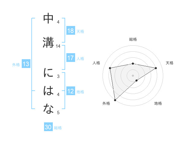 中溝 にはなさんを姓名の画数から五運を鑑定
