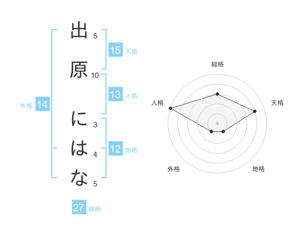 出原 にはなさんの総格は27画の3点!