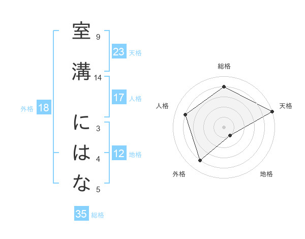 室溝 にはなさんの総格は35画の4点!