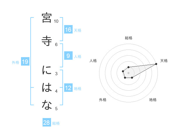 宮寺 にはなさんを姓名の画数から五運を鑑定