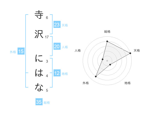 寺沢 にはなさんの地格は12画の1点!