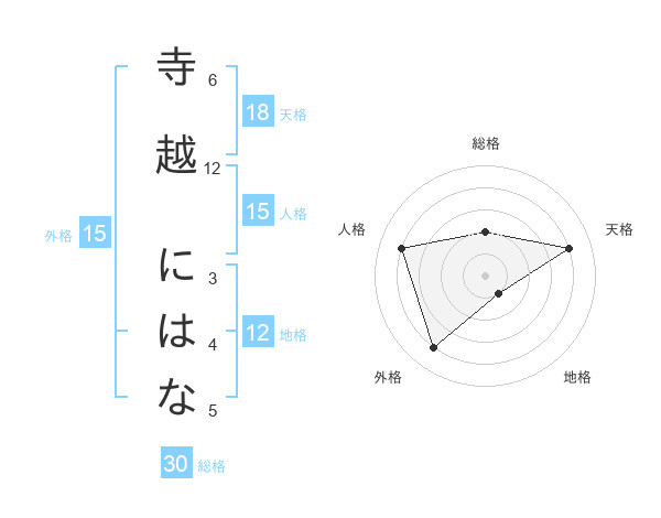 寺越 にはなさんの総格は30画の2点!