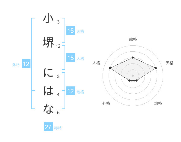 小堺 にはなさんを姓名の画数から五運を鑑定
