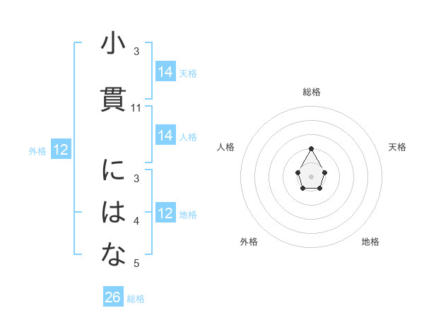 小貫 にはなさんを姓名の画数から五運を鑑定