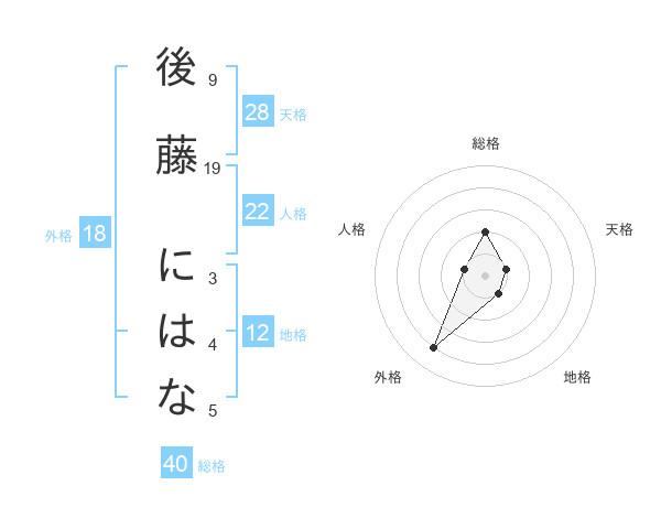 後藤 にはなさんを姓名の画数から五運を鑑定