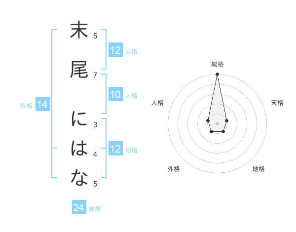 末尾 にはなさんの総格は24画の5点!