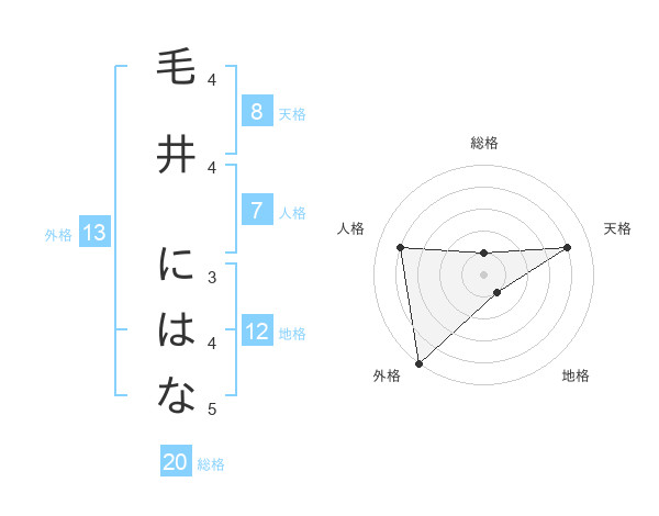 毛井 にはなさんの外格は13画の5点!