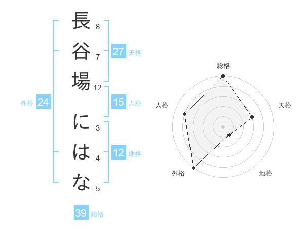 長谷場 にはなさんを姓名の画数から五運を鑑定