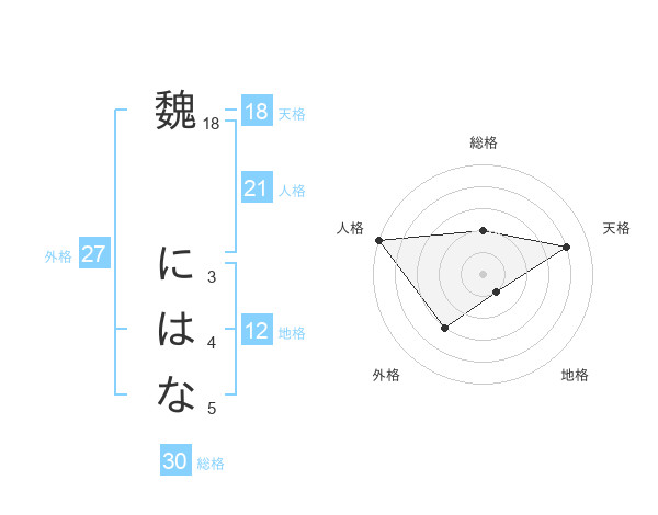 魏 にはなさんの人格は21画の5点!
