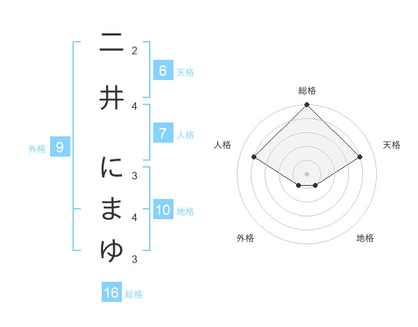 二井 にまゆさんの天格は6画の4点!