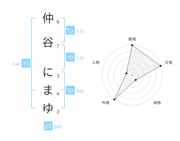 仲谷 にまゆさんの天格は13画の5点!
