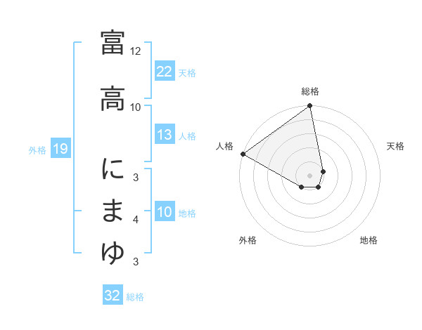 富高 にまゆさんを姓名の画数から五運を鑑定