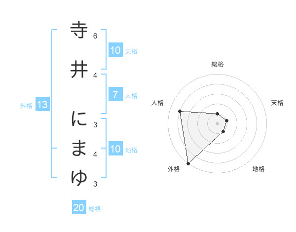 寺井 にまゆさんの外格は13画の5点!