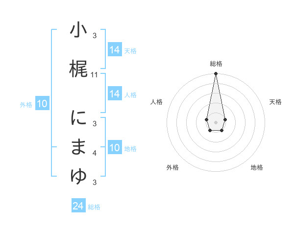 小梶 にまゆさんを姓名の画数から五運を鑑定