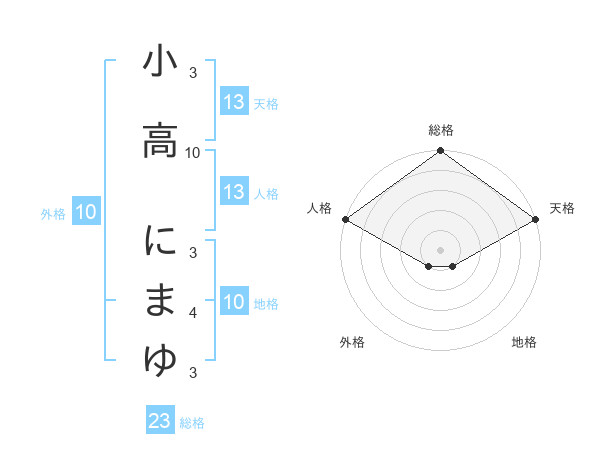 小高 にまゆさんを姓名の画数から五運を鑑定