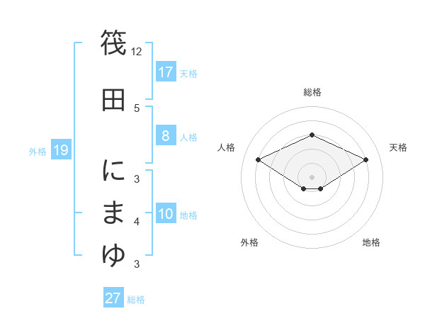 筏田 にまゆさんを姓名の画数から五運を鑑定