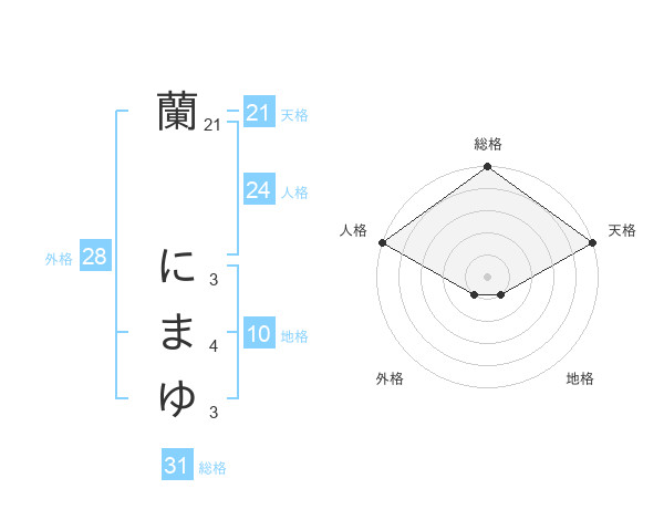 蘭 にまゆさんの総格は31画の5点!