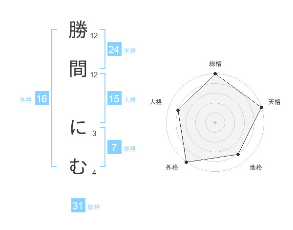 勝間 にむさんの総格は31画の5点!