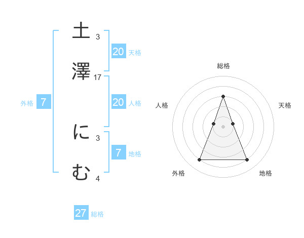 土澤 にむさんの総格は27画の3点!